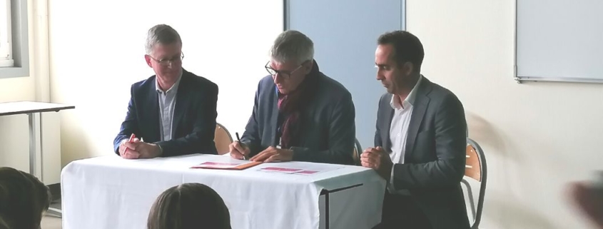 🖊 Ce 28 septembre, François Coué, notre dirigeant & président de la FNTR Mayenne, Denis WALECKX, Directeur Académique des Services de l’Education Nationale, et François POIRIER, représentant la Direction du Diocésaine de l’Enseignement Catholique, ont tous trois signé cette charte au Collège Victor Hugo de Lassay-les-Chateaux.